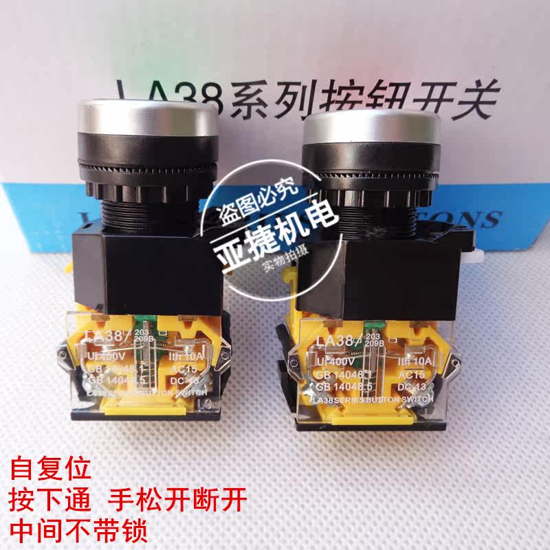 Self-reset button switch LA38-11 bore diameter 22MM red green yellow open one closed power switch