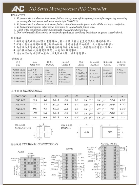 Taiwan Youzheng original temperature controller temperature controller ND545 digital temperature control meter intelligent thermostat
