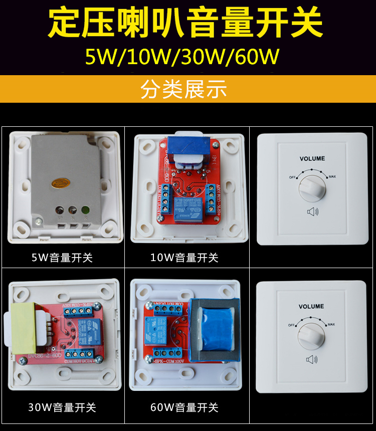 5W Five-shift band switch 10W Five gear switch (with strong cut) 20W Five gear switch (with strong cut) 30W Five-gear switch (with strong cut) 60W-5 gear switch (with strong cut) 120W