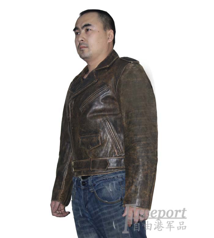 Locomotive leather jacket Diagonal Necklace Leather Jacket Rock Leather Jacket Retro Leather Jacket