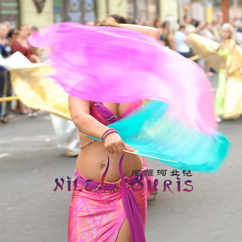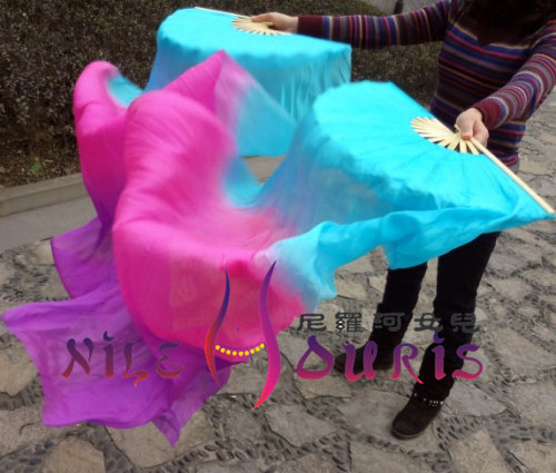 Neilos Open Cabin Price Belly Dance Real Silk Fan Lake Dance Fan Lake Blue Pink Purple 1 5m * 0 9m