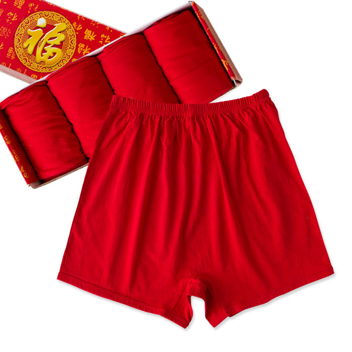 Buy 3 send 1 medium old age female pure cotton four-corner shorts pants loose mother red old lady 100%
