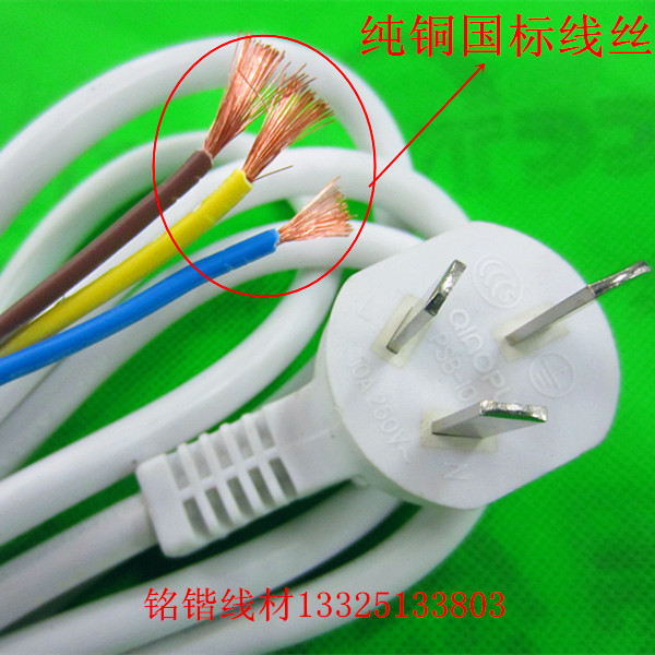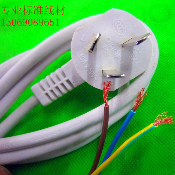 Pure copper national standard white power cord 3 Core 0 75 2 m 2 m 3 m 10A with plug power cord Three-hole connection line