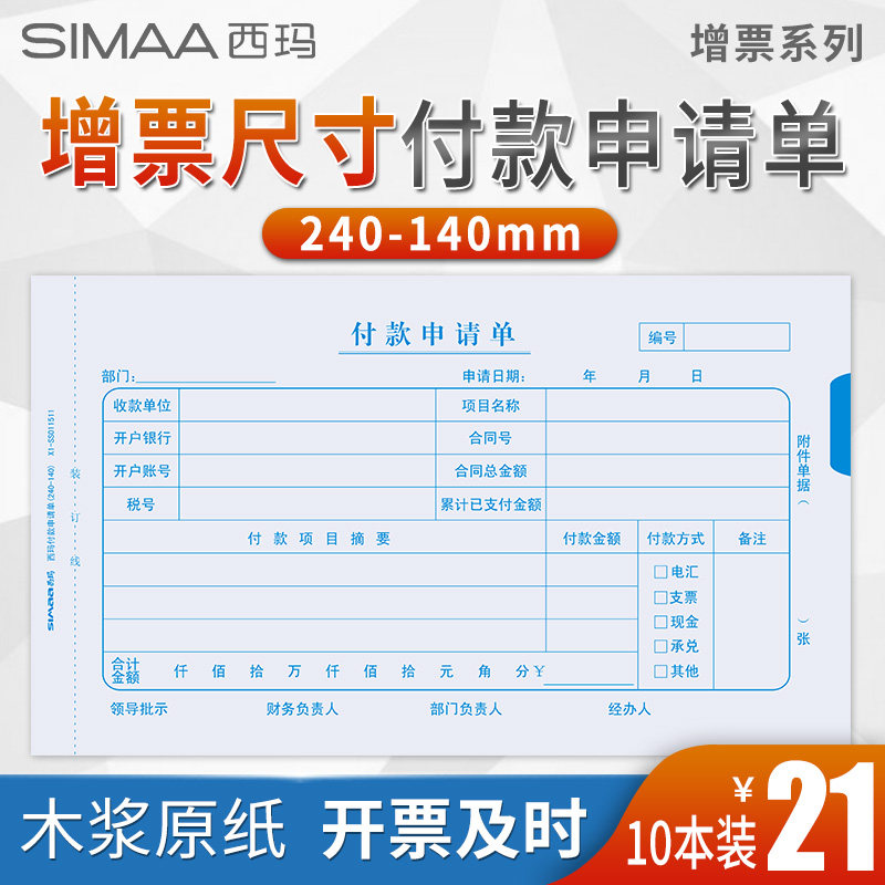 Sima Financial Documents 240 * 140 Increase Ticket Specifications Payment Application Single Payment Collection Transfer Bookkeeping Voucher VAT Invoice Specifications Financial Accounting Items Bookkeeping Vouchers-Taob