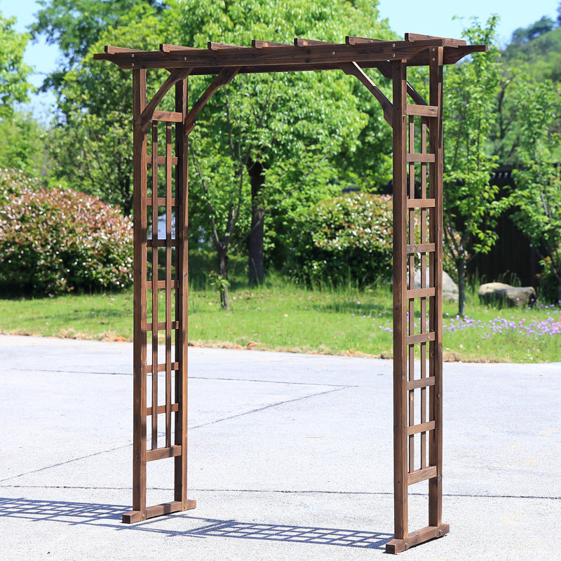 Outdoor carbonized wood garden arch flower rack balcony anti-corrosion wood grape rack large solid wood garden climbing rattan rack