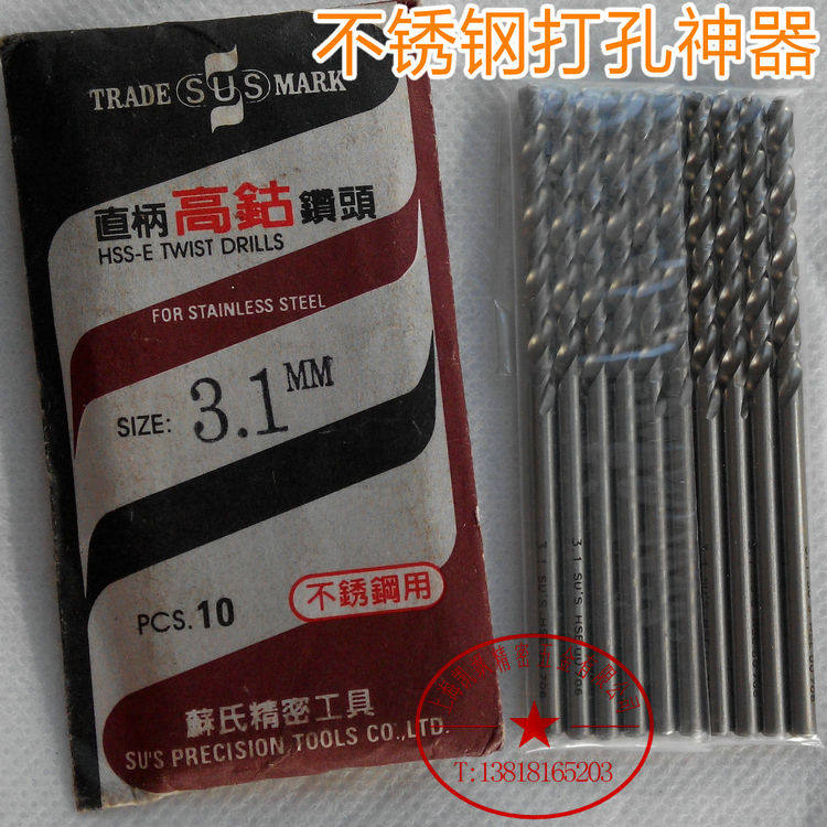 Authentic Taiwan SUS Su's high cobalt drill imported stainless steel special straight handle twist drill bit 8 1-10 0