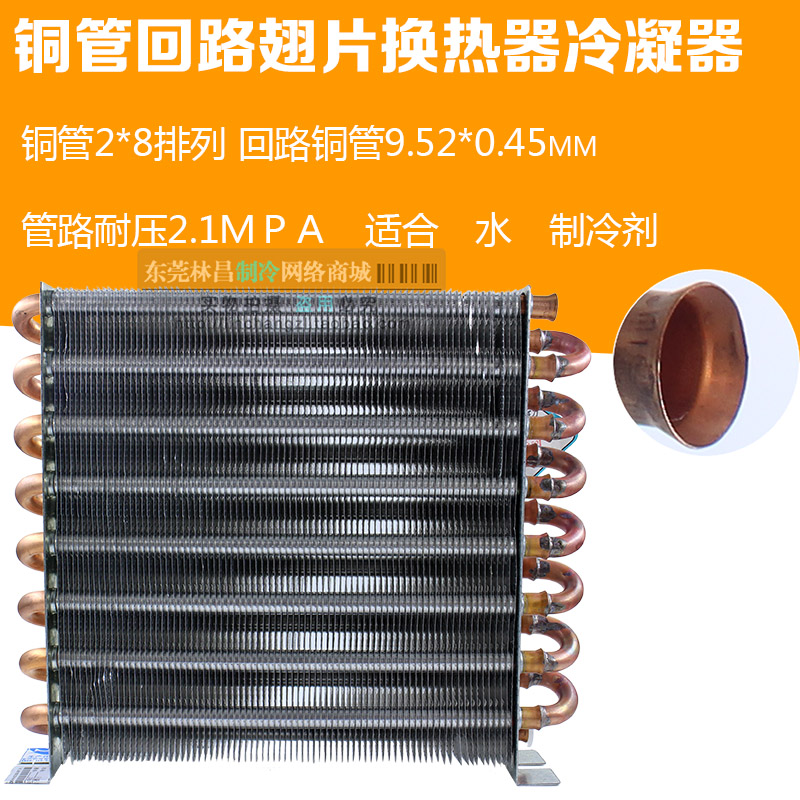 Air-cooled water-cooled aluminum fin cold row freezer condenser copper tube loop radiator cooling fin heat exchanger