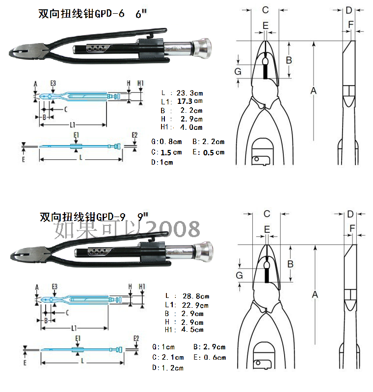 9 inch unidirectional stranding pliers GPM-96 inch two-way stranding pliers GPD-69 inch two directional stranding pliers GPD-96 inch unidirectional stranding pliers GPM-6