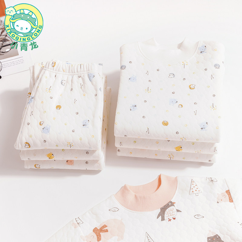 Small Green Dragon Children Warm Underwear Suit Boy Girl Girl Baby Girl Autumn Winter Three-layer Thickened Autumn Clothes Sanitary Pants