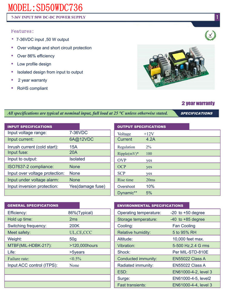 DC DC24V transDC DC12V 4 2A DC-DC on-board isolation stabilized voltage supply LB50D-7660