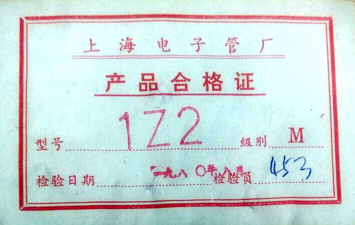 High voltage rectifier electronic tube Shanghai brand Spark brand 1Z11 1Z2
