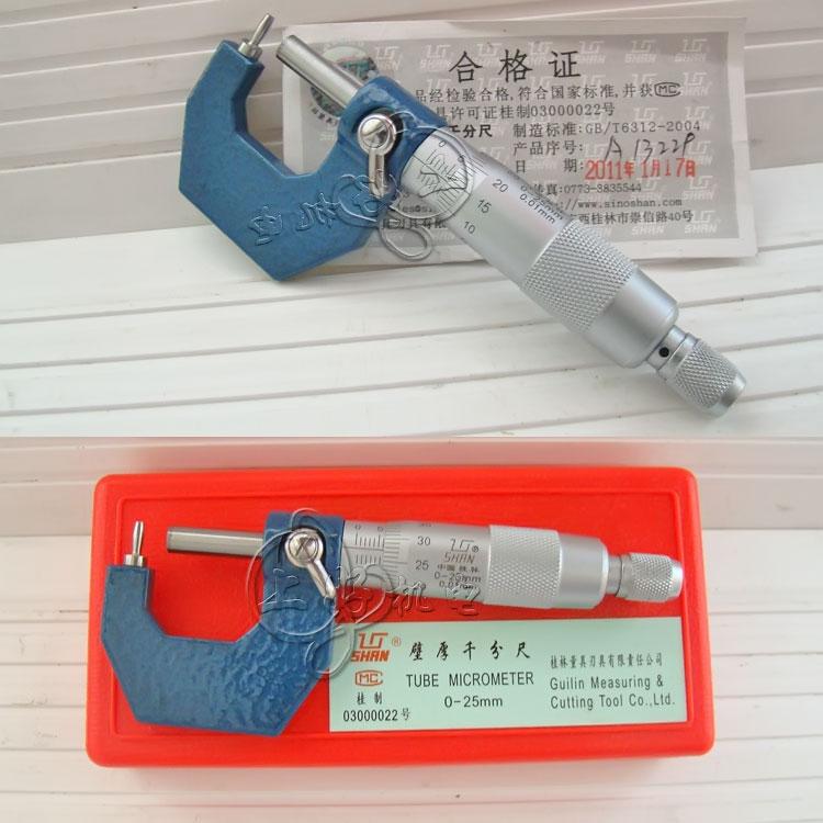 Original Guilin wall thickness micrometer 0-25mm Accuracy: 0 01mm tube micrometer Waist drum type