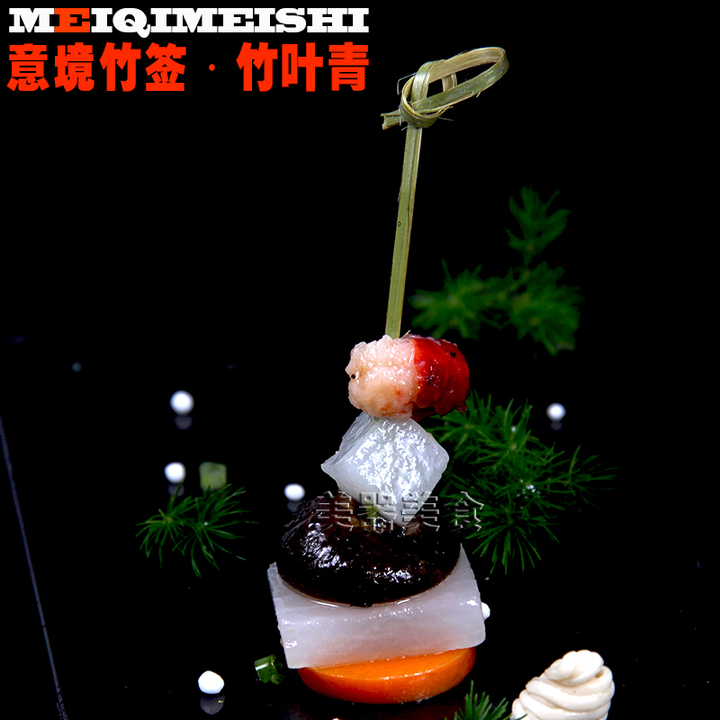 Bamboo leaf green art toothpick fruit plate artistic conception bamboo stick creative dishes tool hotel supplies plate decoration decoration dining room