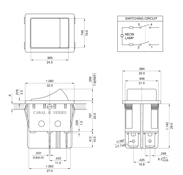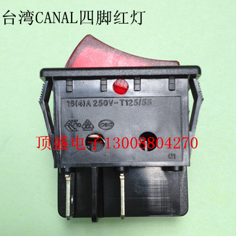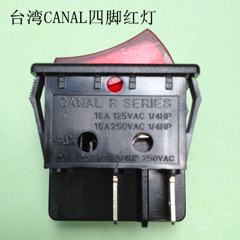 Taiwan CANAL ROCKER SWITCH Rocker Switch Large Current 16A 30 * 22 bored Four feet Two Stalls Red Light R210