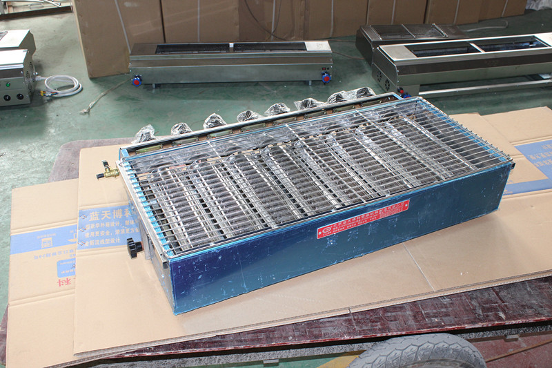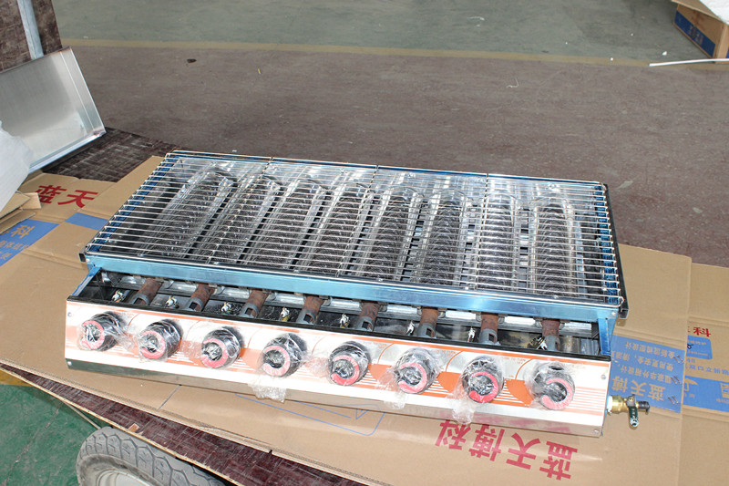 Blue sky brocade large eight-head natural gas liquefied gas smokeless environmental protection energy-saving bottom furnace barbecue furnace stainless steel shell