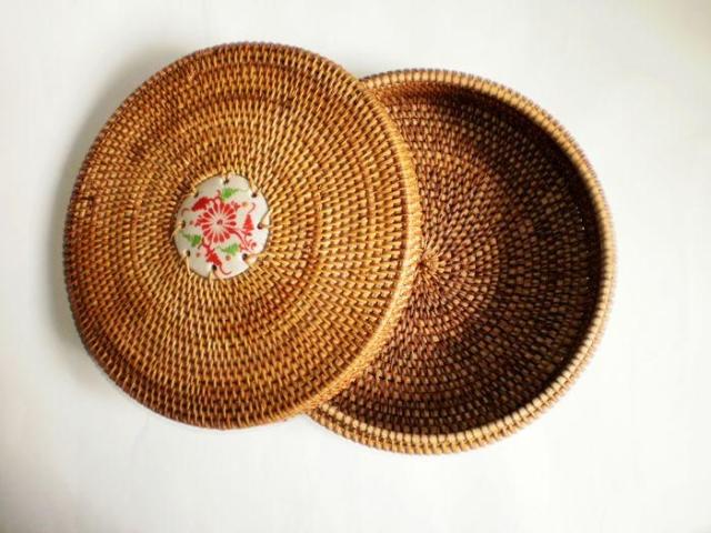 Vietnam imported handmade rattan woven large round box storage box Seven sons double cake box Pu'er tea packaging box