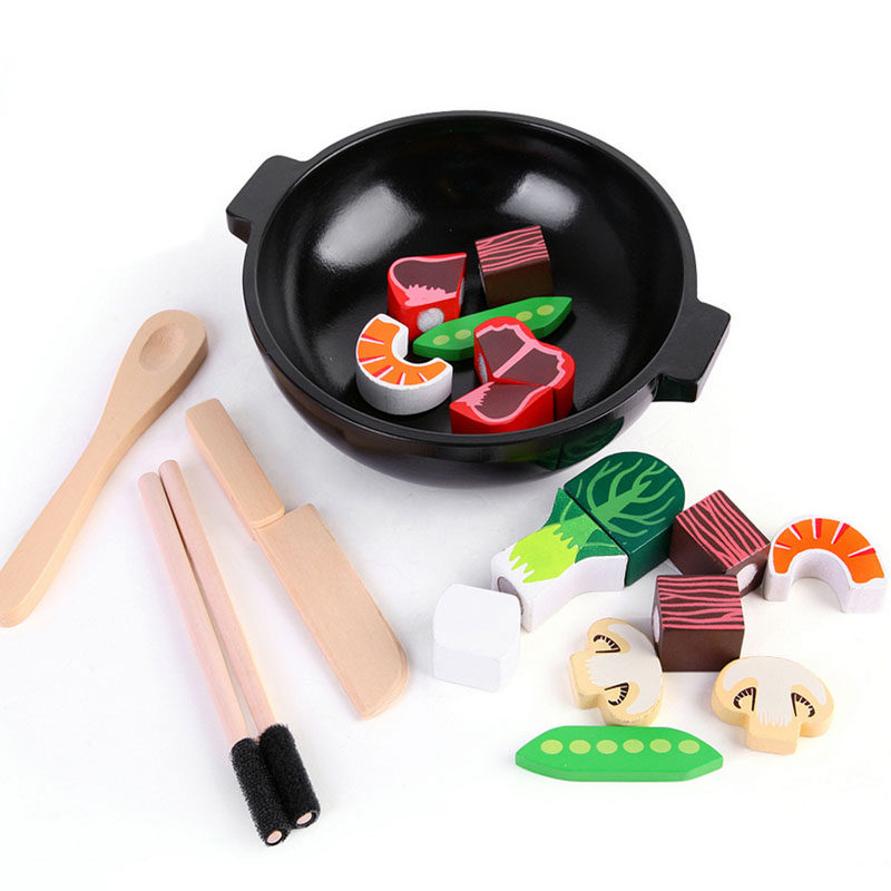 New special offer American brand children's home wine Wooden kitchen cooking set toy large vegetable pot set