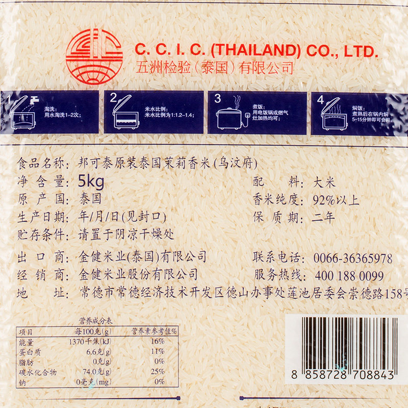 Jin Jian, Thailand Uwenfu jasmine rice 5KG original imported Tai Rice 10kg long grain incense