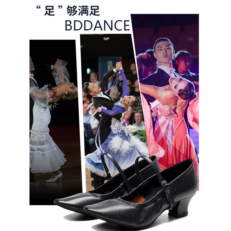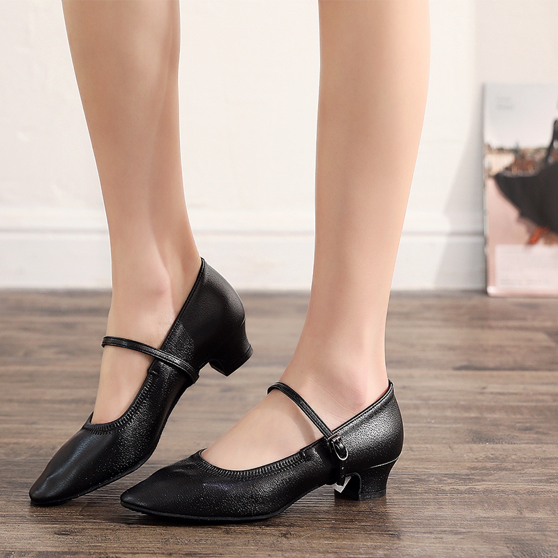 Leather Betty Women's Modern Dance Shoes Betty 125 Waltz Social Dance Shoes Elderly Heel Flat Black Shoes