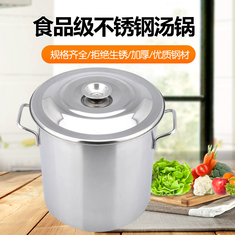 Stainless steel stockpot High pot thickened with lid 30 30 35 35 45 45 50 60 stainless steel bucket