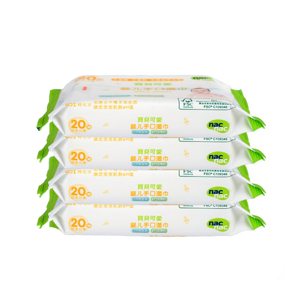nac baby cute wet wipes 20 smoke 4 packs hand-mouth special freshmen baby wet tissue small bag portable carry-on