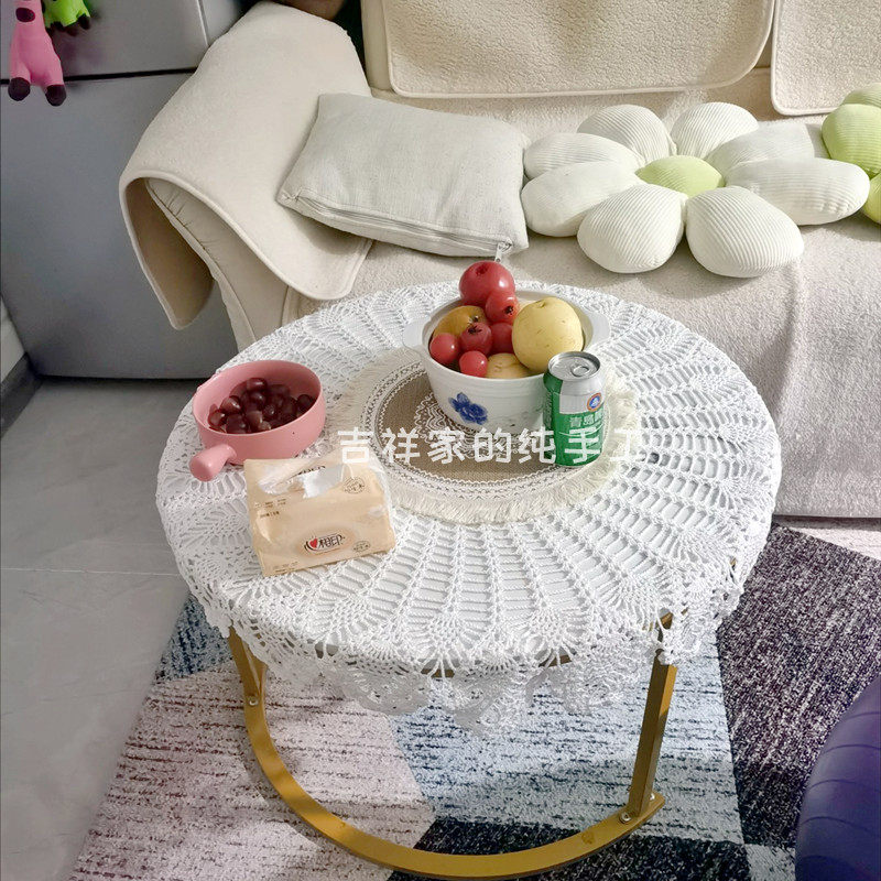 Handcrafted Crochet Cotton Thread Pineapple Flower Sofa Table Cloth European Style Countryside White Christmas Round Table Cloth Nordic Pink