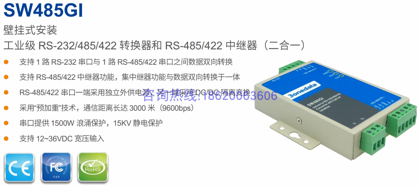 Triwan SW485GI active light sepc RS232 RS485 422 bidirectional conversion repeaters 3onedata