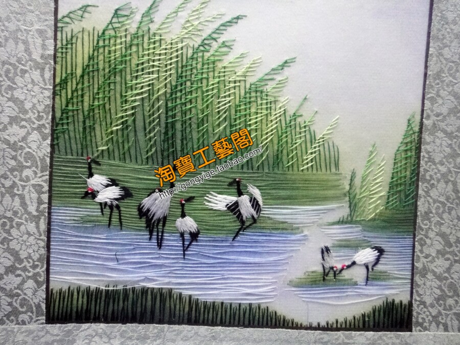 Su embroidery finished product fine decoration hand embroidery crane hanging painting soft frame 30*30 cm group crane dance