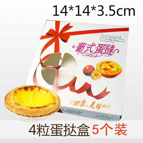 Happy Moms-Style Egg Tart Box Send Gift Box Egg Tower Thickened Packaging Box Four-Six Grain (red ribbon pattern)