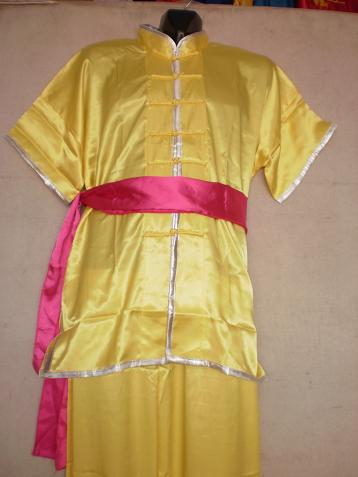 Promotional imitation silk edged clothing, Tai Chi clothing, short-sleeved edged performance clothing, exercise clothing