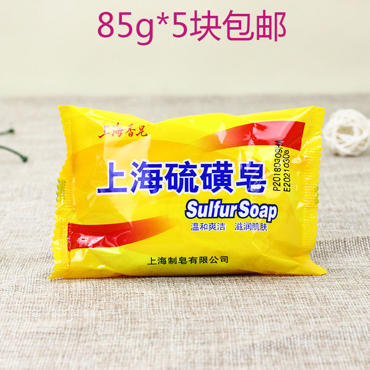 Shanghai Sulphur Soap Apart Mites Mite Wash Face Bath Soap Dispel Acne Clean Face Soap Stop Itch Crumb 85g * 5 blocks