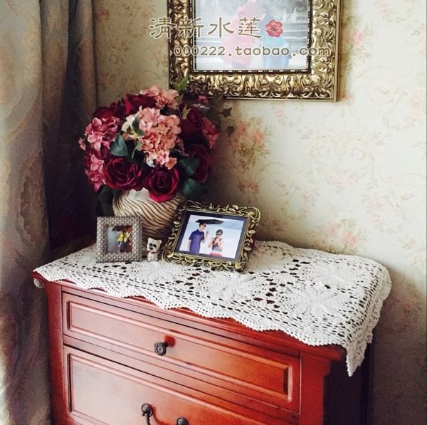 Hand crochet Chinese style European-style retro pure cotton hollowed-out decoration cabinet cover cloth towels table flag white beige 50cm wide