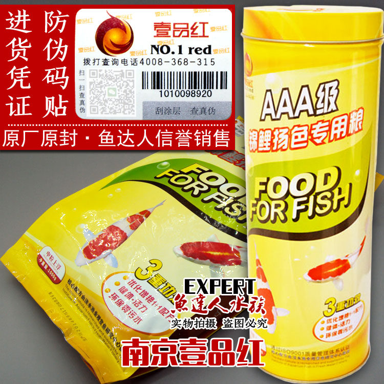 A piece of red koi feed one pin red AAA premium koi goldfish food grain to staple germ