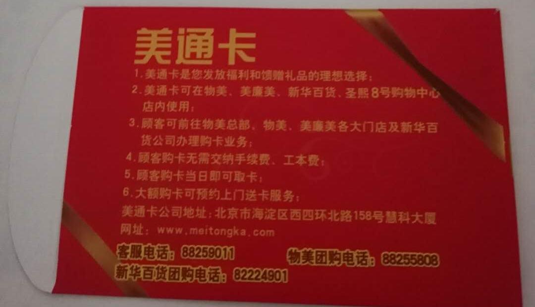 Beijing Meitong Card Meilianmei Wumart Xinhua Department Store 1,000 yuan face value large delivery