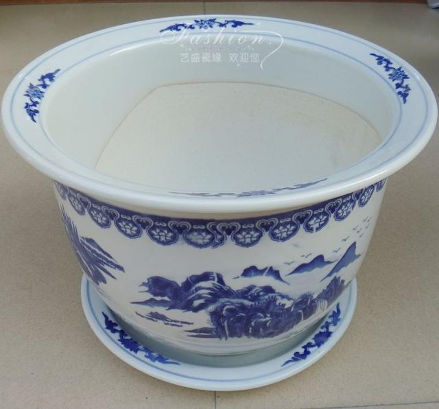 {Art Sein Porcelain Edge} Ceramic Flower Pot Jingdezhen Green Flower Porcelain Flower Pot Flower Pot Vase Flower Flower with trays-Taobao
