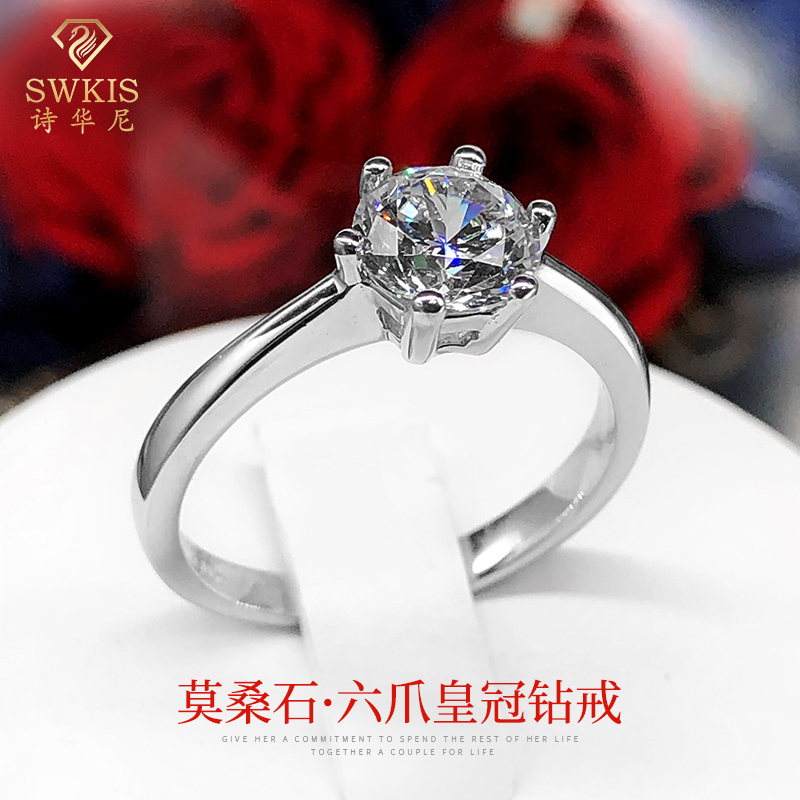 American Moissan Stone diamond ring six claw ring women's simple 40 points 1 carat simulation diamond ring proposal ring Sterling silver 18K gold
