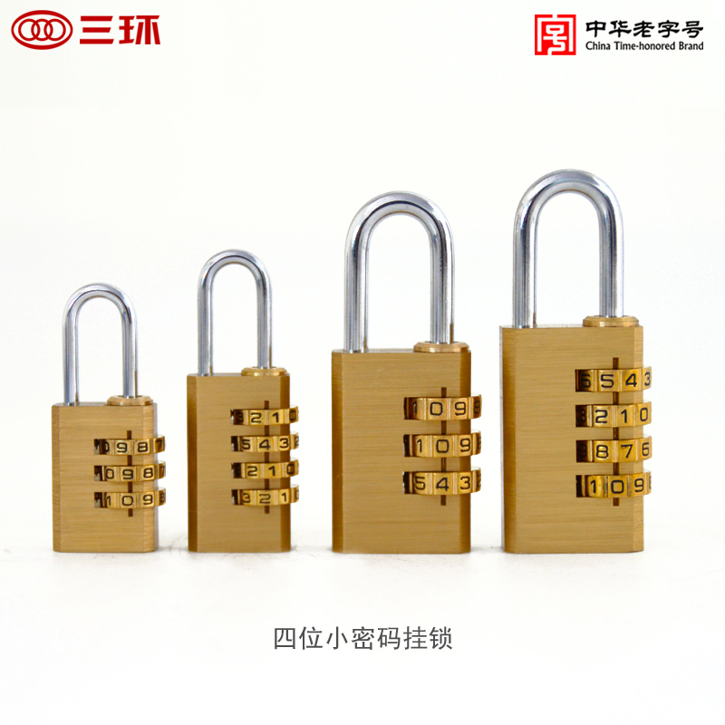 Three-ring pure copper small password padlock full copper three-four password suitcase bag more wardrobe anti-mis-changing password copper lock