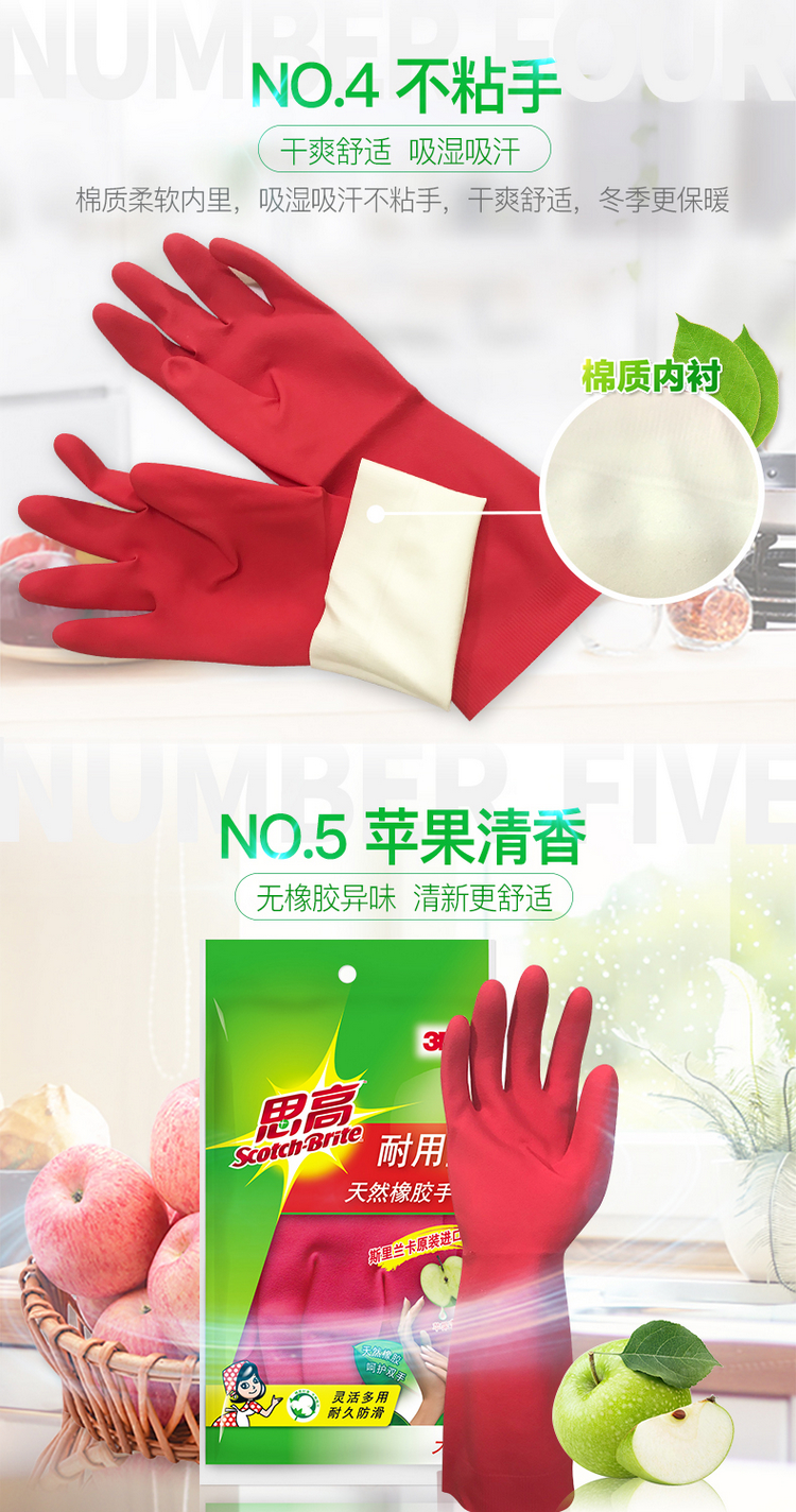 3M Sigao Natural Rubber Latex Durable Gloves Kitchen Household Cleaning Laundry Washing Dishwashing Dishwashing Waterproof