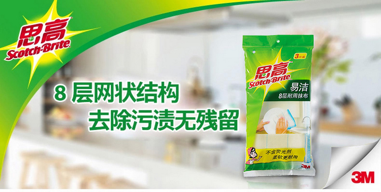 3M Scotch easy-to-clean durable rag 8-layer kitchen household water-absorbing thickened non-lint-free non-oily dishcloth