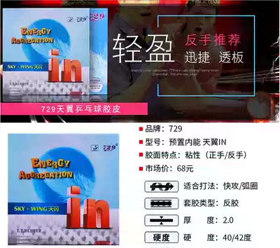 729 Tianyi ultra-light anti-glue sleeve glue pre-set inner energy IN ultra-easy control Tianyi table tennis rubber reverse glue