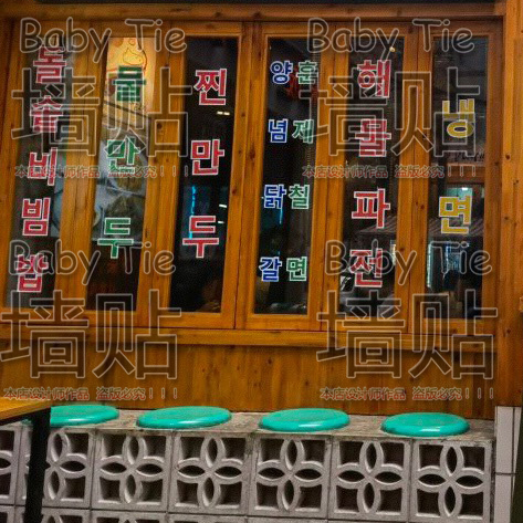 Small Red Book Recommended Bicolor Korean Alphabet Glass Stickers Han Style Cold Noodle Snack Dining Room Stone Pan Mixed Rice Glass Sticker