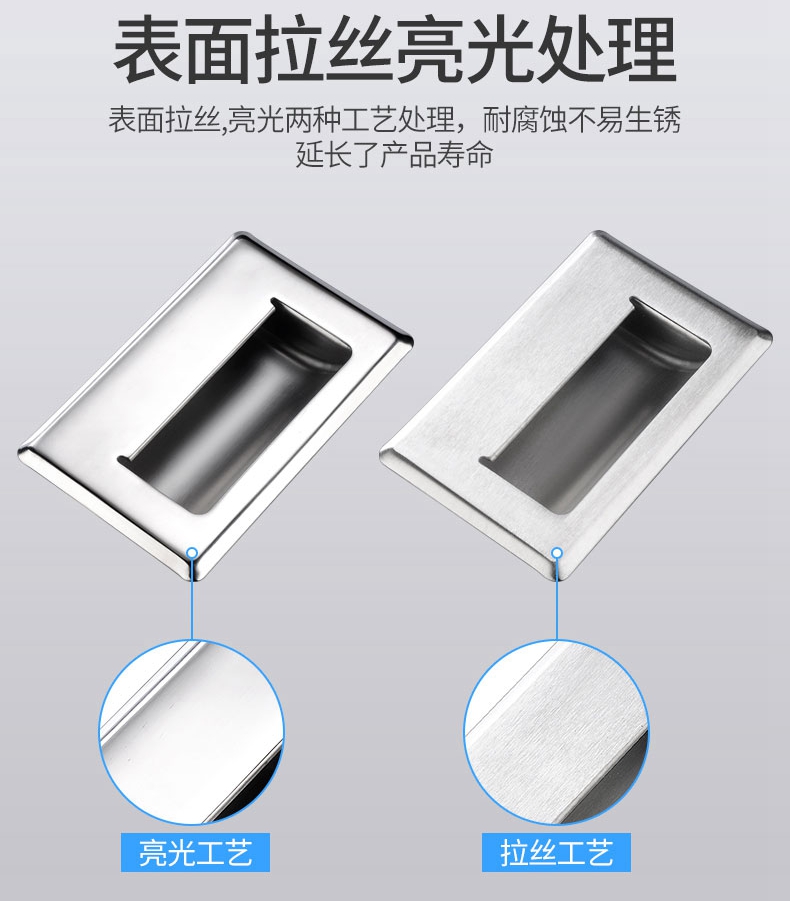 Thickened 304 stainless steel embedded hidden industrial handle buckle hand buried into the whole cabinet handle draw hands