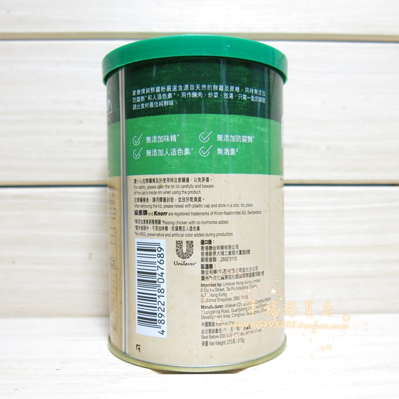 Hong Kong Version Knorr Pure Chicken Powder Chicken Powder Seasoning without MSG Seasoning Chicken Essence 273g