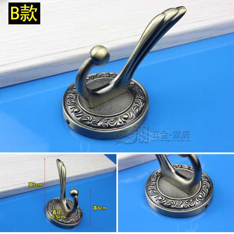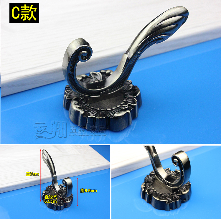 Adhesive hook European style antique clothes thick coat hook hanging clothes single wall wall hanging clothes hook dressing room