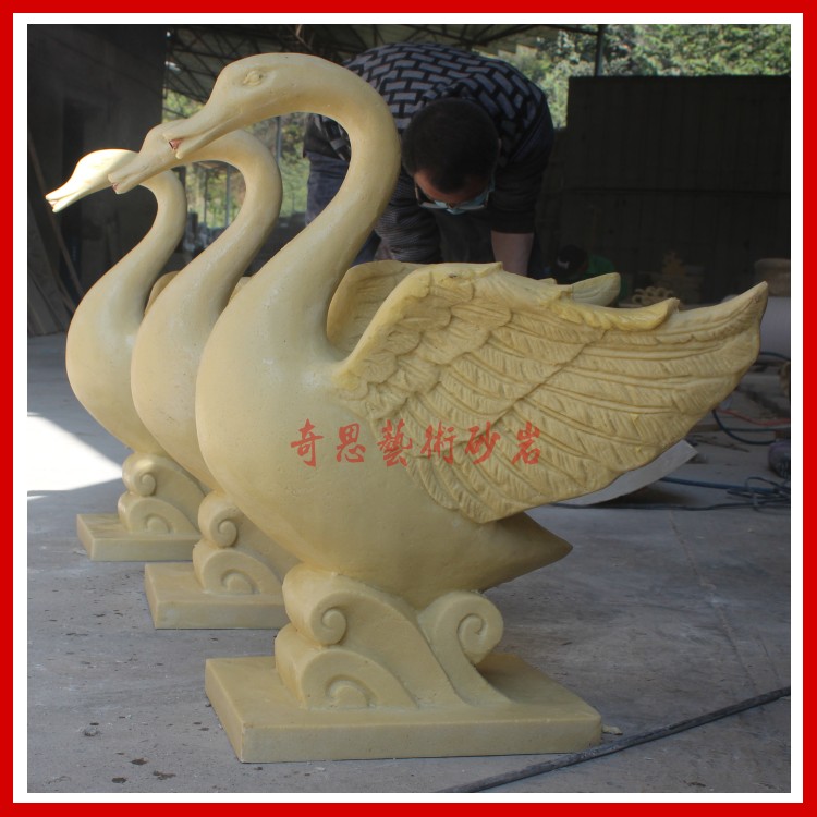 Sandstone swan fountain sculpture European relief background three-dimensional wall painting outdoor waterscape decoration factory direct sales