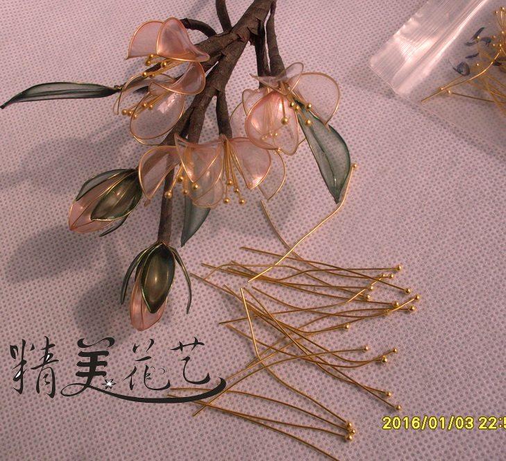 Gold-plated golden long needle flower core crystal flower accessories DIY accessories 100 pieces flower core cherry blossom special
