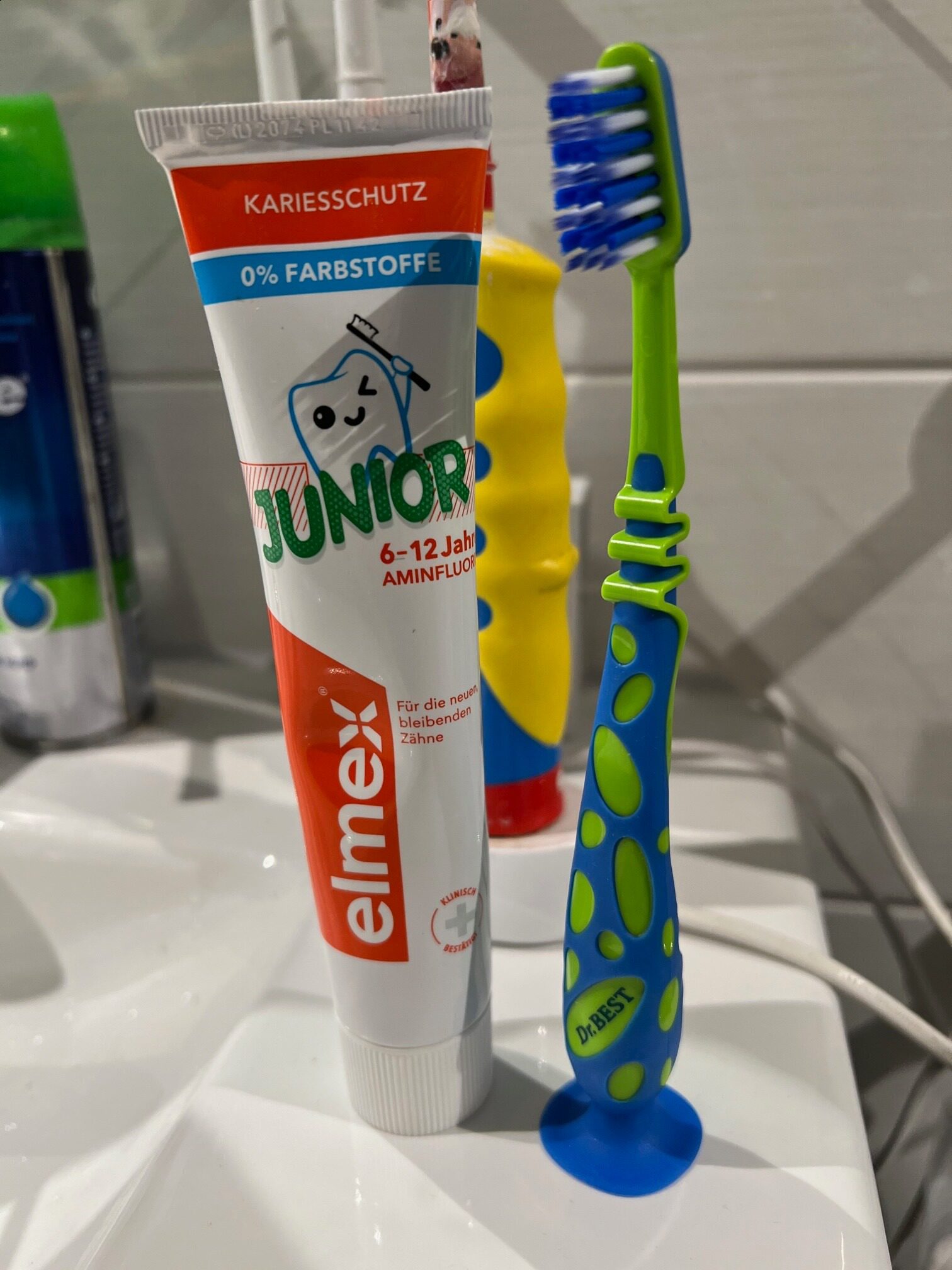 Spot new packaging Germany Direct purchase Dr Best children's baby toothbrush 6-8 years old soft mullet stand-Taobao
