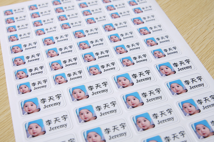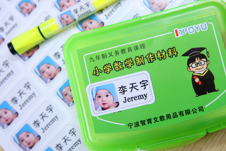 Waterproof photo name sticker paper Korean creative cute photo name strip kindergarten primary school name card free of cutting