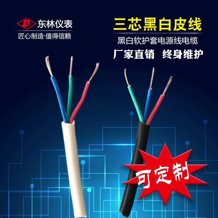 Three-core sheathed temperature measurement line white and black leather line copper wire thermocouple resistance PT100 CU50 type special extension line