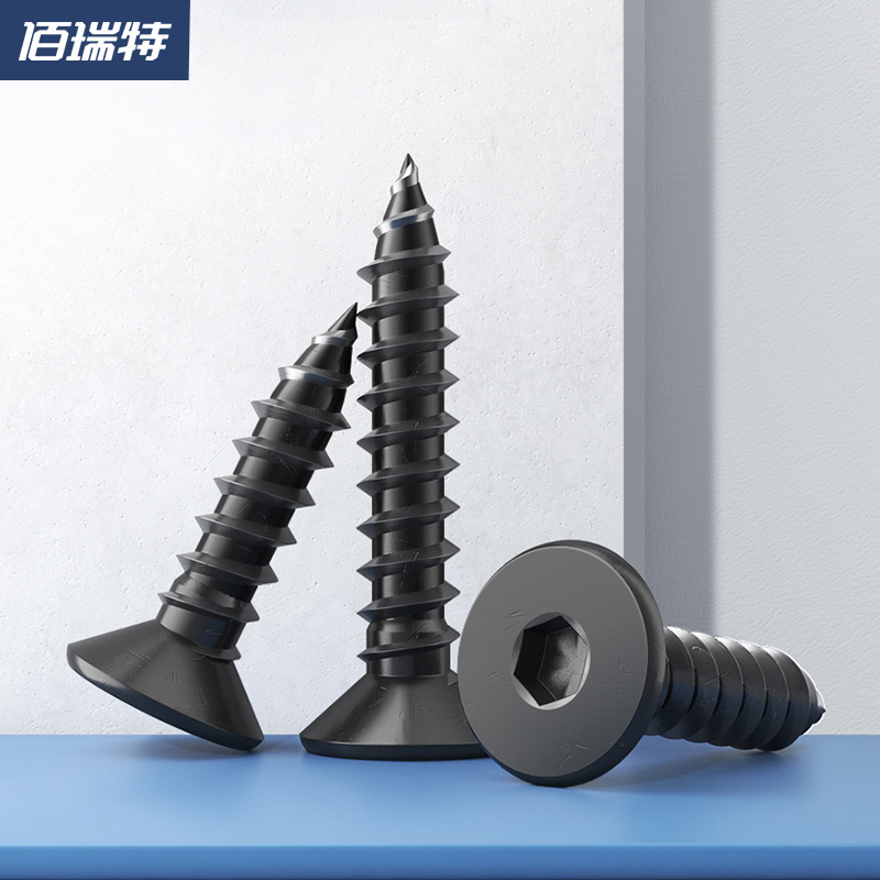 8 8 class flat head black inner hexagonal self tapping screw big total accessories sink head self tapping silk wood screw M3M4-M6